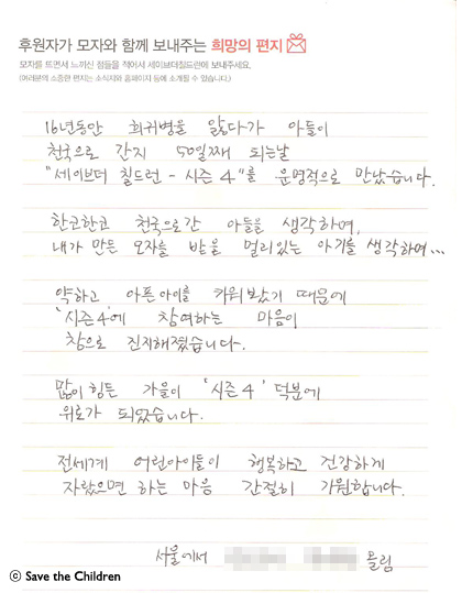 <신생아 살리기 모자뜨기 캠페인 시즌4>는 2011년에도 계속됩니다. 오늘은 시즌 4 참여하신 모자 후원자님께서 보내 주신 따뜻한 사연입니다.