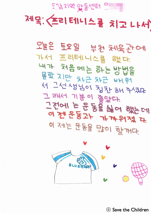 [여진(가명), 10세, 여] 그 전에는 운동을 싫어했는데 이젠 운동과 가까워졌다. 이제는 운동을 많이 할꺼다.