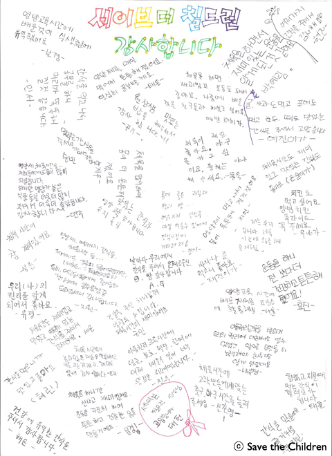 사진/ 대구 엔젤지역아동센터 아동들이 적은 롤링페이퍼