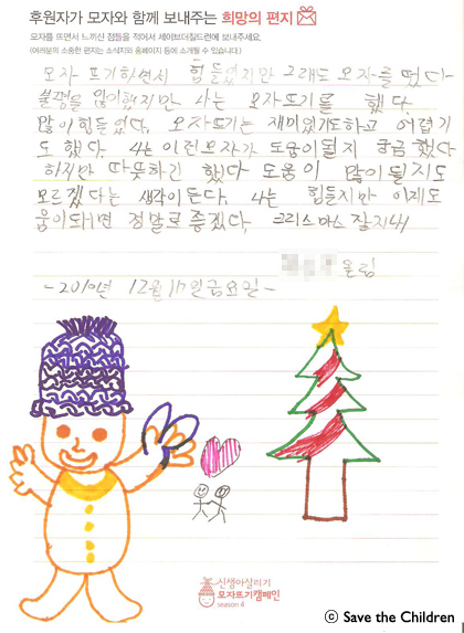 <신생아 살리기 모자뜨기 캠페인 시즌4> 기간이 연장되어 3월 31일까지 실시됩니다. 오늘은 시즌 4 참여하신 모자 후원자님께서 보내 주신 따뜻한 사연입니다.