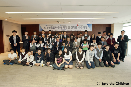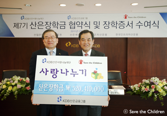 2011년 5월 19일, 새롭게 선발된 산은장학생 제7기 81명의 '산은장학금 증서수여식'이 진행되었습니다. 산은장학사업은 2005년부터 산은사랑나눔재단과 세이브더칠드런이 함께 진행해 오고 있습니다. 2011년도에는 신규 장학생을 포함한 총 298명의 장학생에게 5억 2,000여 만원의 장학금이 전달될 예정입니다.