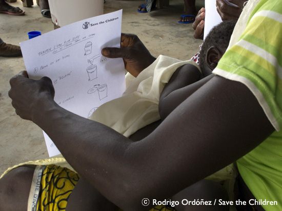 사진/ 코트디부아르 서부 귀글로 지역 피난캠프에서 물을 정화하는 방법을 배우고 있는 여성들