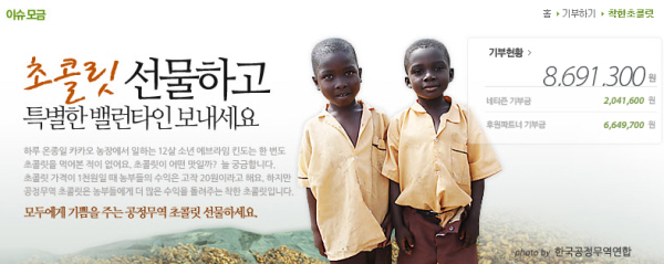 | 코트디부아르를 돕는 착한 초콜릿 캠페인 진행 | 페이스북 트위터 퍼가기 인쇄 |