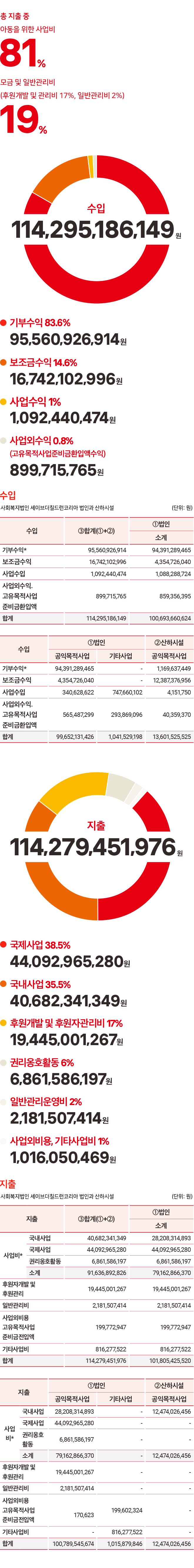 *세이브더칠드런 홈페이지와 『국세청 공익법인 결산서류 등 공시시스템』을 통해 더 상세한 재무정보를 확인할 수 있습니다.