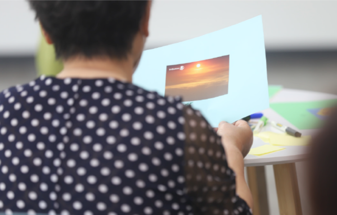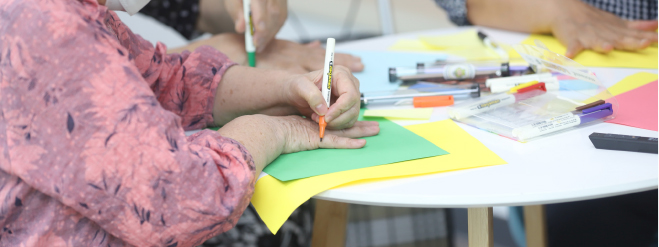 ‘교육’ 자체를 부담스러워하는 분도 있고, 한글을 못 쓰시는 분들은 시작하기도 전에 걱정부터 하기 때문입니다. 그래서 이렇게 말합니다. ‘하고 싶은 이야기 실컷 하고 노시다 가세요.’ 아이를 키우느라 나를 잊어버린 할머니, 할아버지는 조손도손 첫 시간에 불리고 싶은 이름을 정합니다. 그리고 내가 자랑하고 싶은 나의 모습이나 과거의 일들을 떠올려봅니다. 이만큼 키우기까지 고생했다고, 참 잘해왔다고 서로 응원합니다.