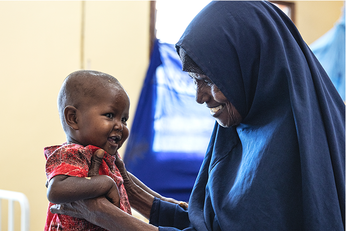 그러나 극심한 가뭄으로 영양실조가 급증한 케냐에는 영양실조 치료를 받지 못하는 아동이 많습니다. 케냐 북서부 외딴 마을에 사는 사디아의 딸 아이샤(가명, 2살)도 영양실조에 걸렸지만, 제때 치료를 받지 못한 아동 중 하나 입니다. 사디아는 영양실조로 몸이 약해진 아이샤가 아프기 시작하자 딸을 잃게 될까 봐 두려웠습니다. 다행히 마을에서 한참 떨어진 세이브더칠드런이 지원하는 병원에 갈 수 있었고, 아이샤는 영양실조 치료를 받고 건강을 회복했습니다. 아이샤를 치료한 의사 포우지아는 영양실조로 허약해진 아동이 또 다른 질병에 걸리지 않도록 항생제를 처방하고, 필수 영양소를 보충하기 위한 치료용 우유를 줍니다. 상태가 좋아지면 영양소가 풍부한 땅콩 페이스트를 먹이는데 빠르면 일주일 안에 체중이 늘게 합니다. 건강을 회복한 아이샤는 밝은 얼굴로 퇴원할 수 있었습니다.