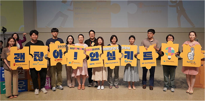 11개의 공공기관과 부산지역 아동에게 코로나19 때 사용했던 가림막을 기후위기와 재난을 인식하고 스스로 보호할 수 있도록 ‘안심(재난)키트’로 업사이클링하여 ‘재난대비 핸드북’과 함께 지원했습니다.
