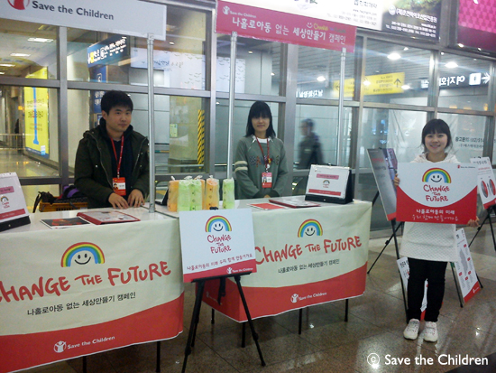 거리에서, 혹은 지하철 역사에서 세이브더칠드런의 캠페인 로고를 발견하시거든