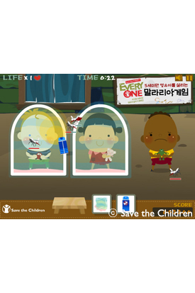 한편, 세이브더칠드런은 5세 미만 영유아 사망의 3대 원인이자 45초에 한 명의 아이를 사망에 이르게 하는 말라리아의 무서움을 알리고 말라리아 예방약과 살충 처리된 모기장, 모기퇴치 스프레이 등 간단한 방식으로 손쉽게 예방 및 치료가 가능하다는 점을 알리기 위해 지난해 말라리아 퇴치 플래시 게임(http://www.sc.or.kr/everyone/game.php)을 개발했다. 이번 어플을 통해 스마트폰을 이용해서도 아동에게 모기장을 씌어주고 스프레이를 뿌려 모기를 퇴치하는 방식으로 말라리아 퇴치 게임을 즐길 수 있으며 아동에게 실질적으로 도움을 주고 싶다면 후원 연동 기능을 통해 모기장 등을 직접 지원할 수도 있다.