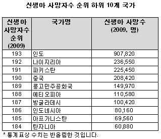 - 인도, 한해 신생아 사망자 수 90여 만 명…신생아 사망 막을 수 있는 저개발국 보건요원 지원 시급
