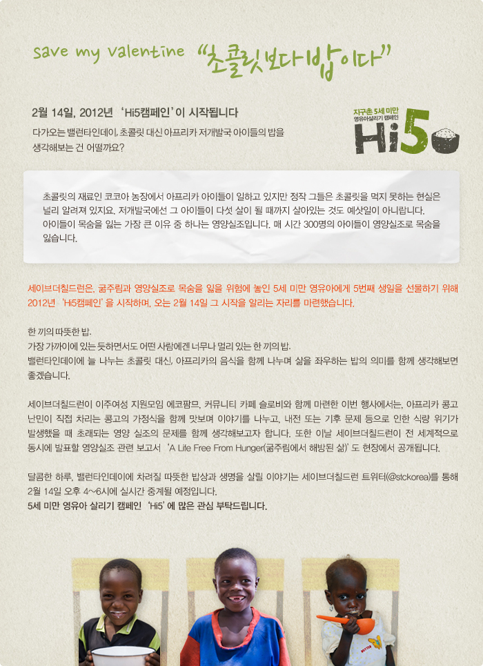 2월 14일, 2012년 'Hi5캠페인'이 시작됩니다.