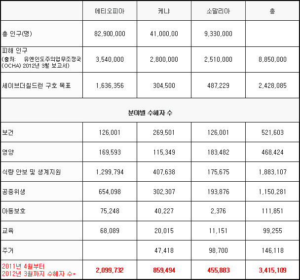 세이브더칠드런 동아프리카 긴급구호 활동 결과