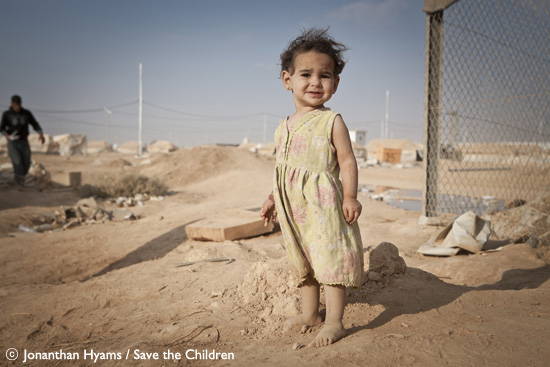 세이브더칠드런은 현재 요르단에 100명, 레바논에 75명의 스태프가 상주하며 난민캠프의 아동과 가족에 대한 생필품, 보건의료서비스 지원과 함께 심리적 치료를 제공하는 아동친화공간을 만들고 학교 운영 등을 돕고 있다. 요르단에서만 25개의 아동친화공간을 세웠고 시리아의 난민 아동이 다닐 수 있도록 41개의 학교를 지원하고 있다. 그러나 난민 아동 지원을 위한 재원이 심각하게 모자라는 실정이다.