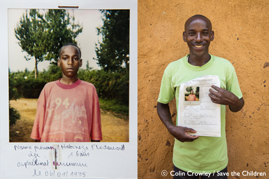 세이브더칠드런의 도움으로 친척을 찾을 수 있었던 플로두아드 씨(당시 15세)는 20년 만에 당시 자신과 두 동생 사이프리언(당시 13세), 글로리오스(당시 5세)를 찍은 폴라로이드 사진과 서류를 보고 학살 때 겪었던 모든 일들이 떠오른다고 말했다. 부모님이 목숨을 잃은 날짜인 1994년 4월 11일을 여전히 정확하게 기억하고 있는 그는 시체 밑에 몸을 숨겨 간신히 학살을 피할 수 있었다. 어린 동생들을 데리고 도망치다 르완다 애국전선(RPF)에 의해 고아 보호 시설에 보내진 플로두아드 씨 남매는 세이브더칠드런이 촬영한 사진과 작성했던 서류를 통해 수소문 끝에 삼촌과 연락이 닿아 고향으로 돌아갈 수 있었다.
