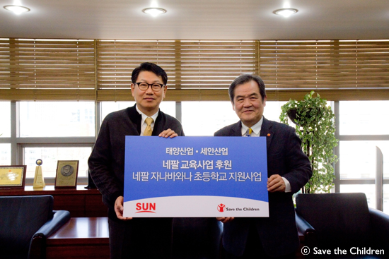 2006년부터 해외사업을 후원해온 태양산업과 세안산업은 2014년 새롭게 네팔 반케지역 바이자푸르 마을에 위치한 자나바와나 초등학교 지원사업에 4,800만원을 후원하기로 하였으며, 지난 2월 후원사업에 대한 전달식을 가졌습니다.