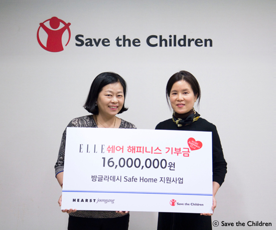2월 10일 허스트중앙은 자사의 월간지 ELLE의 ‘쉐어 해피니스 프로젝트'로 조성된 1600만원을 방글라데시 홍등가 지역 소녀들의 보호시설 Safe Home에 후원했습니다.