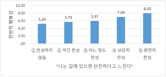 - 가정, 학교, 동네에서 안전하다고 느낄수록 아동이 느끼는 행복감도 증가
