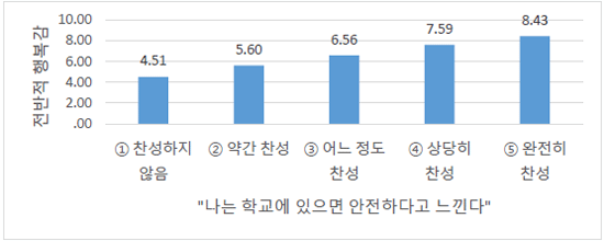 표6. 학교에서 안전한 정도에 따른 주관적 행복감(중학교 1학년)