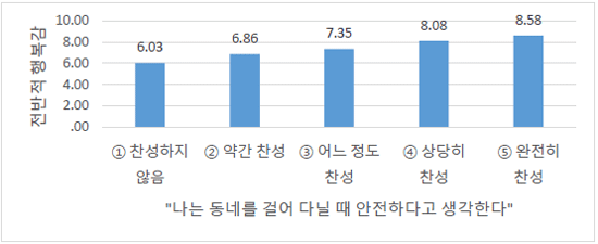 ▶문항 내용: 다음에 대해서 얼마나 찬성하나요? “우리 동네를 걸어 다닐 때 안전하다고 느낀다”