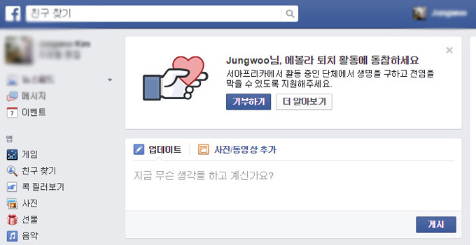- 페이스북을 통해 세이브더칠드런 에볼라 기금에 기부 가능