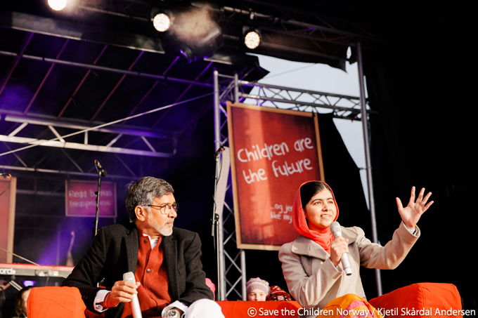 국제 구호개발 NGO 세이브더칠드런의 회원국인 세이브더칠드런 노르웨이는 지난 18년간 매년 노벨평화상 시상식이 열리는 날, 아동에 의한, 아동을 위한 파티를 열고 있다. 이 파티는 12세 아동 12명으로 구성된 위원회가 직접 기획을 맡으며 올해의 위원회는 노르웨이 오슬로 소재 사게네 초등학교와 린데베르그 초등학교 학생들로 구성됐다. 올해 행사에는 메테 마리트 왕세자비, 노르웨이 노벨위원회 위원 등 유명 인사뿐 아니라 역대 최대인 약 6,000명의 노르웨이 아동들이 참석해 자리를 더욱 빛냈다. 오슬로 시청 앞에서 한 시간 가량 진행된 파티에서는 노래, 춤, 마술쇼 등과 함께, 유사프자이와 사티야르티가 노르웨이 아동들과 인터뷰를 하는 자리도 마련됐다. 파키스탄 소녀 유사프자이는 여아도 학교에 다녀야 한다고 주장하다 탈레반에 피격을 당한 뒤 극적으로 살아나 여아의 교육권을 위한 활동을 펴고 있으며, 인도의 아동권리 운동가 사티야르티는 위험한 노동에 내몰린 아동을 보호하는 활동을 펴왔다.