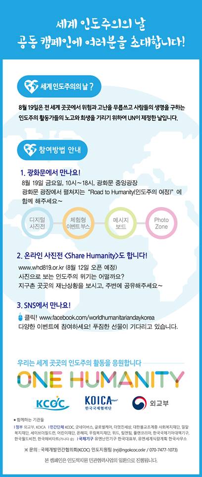 8월 19일 세계 인도주의의 날, 광화문 광장으로 초대합니다!