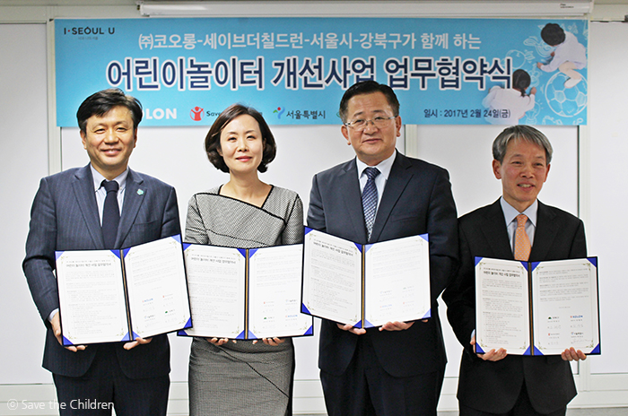 ㈜코오롱-세이브더칠드런-서울시-강북구, 도시놀이터개선사업 MOU 체결