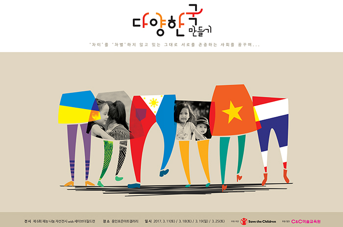 다양한국 만들기를 주제로 아동들의 재능기부를 통한 전시회의 수익금은 세이브더칠드런 중부지부의 다문화인식개선사업에 사용될 예정입니다.