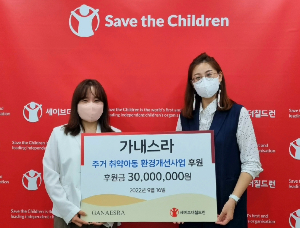가내스라, 취약계층 아동 주거환경개선 위한 후원금 전달