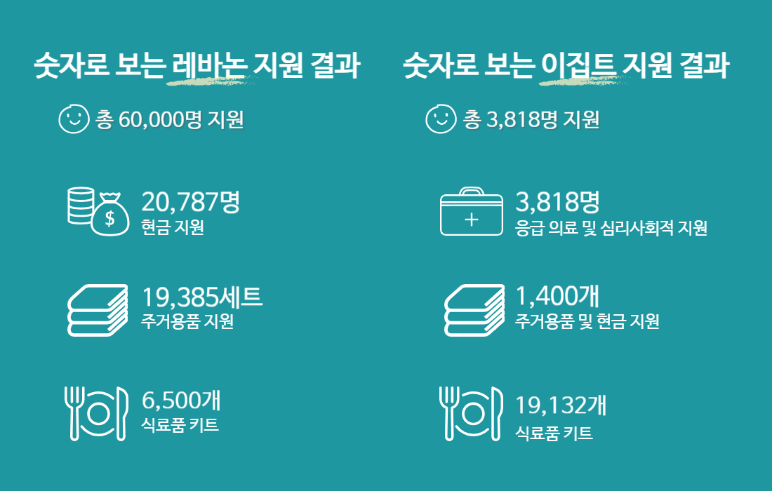 가자지구와 서안지구, 레바논, 이집트에서 전쟁으로 피해를 입은 아동 및 가족 약 779,605명을 도왔습니다.