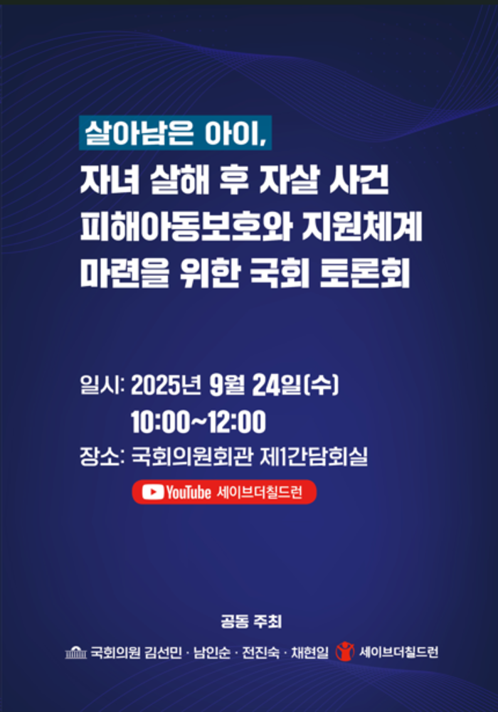 - 공동주최: 국회의원 김선민, 남인순, 전진숙, 채현일, 세이브더칠드런