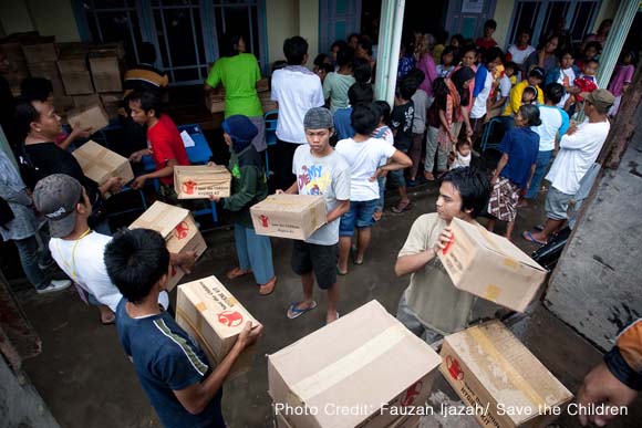 사진/ 세이브더칠드런은 인도네시아 화산분출 피해 주민들에게 생필품 및 여러 구호물품을 보급하고 있다.