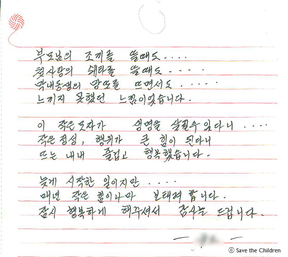 사진/ 모자를 뜨는 동안 생명을 살리는 데 힘을 보탤 수 있어 행복하셨다는 모자 후원자님의 사연