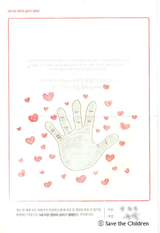 사진/ 아기가 생기고나서 아기를 잃는 엄마 마음을 헤아리게 되셨다는 진솔한 모자 후원자님의 사연과 5세 미만 영유아 살리기 캠페인을 지지하는 손바닥 그림.