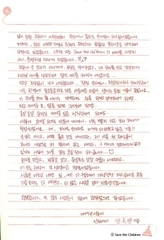 시즌 4가 끝나는 2011년 3월 15일까지 주중 매일 오후 2시 <신생아 살리기 모자뜨기 캠페인> 시즌2와 시즌3에 참여해주신 모자 후원자님의 사연을 소개합니다.
