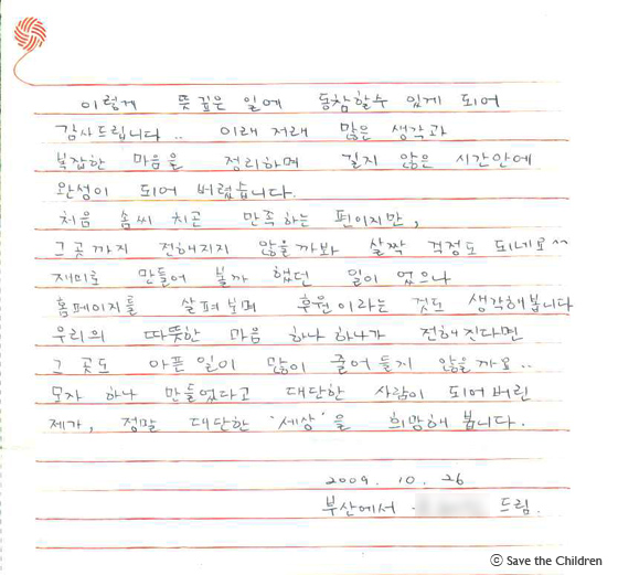 우리의 따뜻한 마음 하나 하나가 전해진다면
