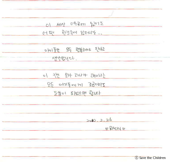 시즌 4가 끝나는 2011년 3월 15일까지 주중 매일 오후 2시 <신생아 살리기 모자뜨기 캠페인> 모자 후원자님들의 사연을 소개합니다.