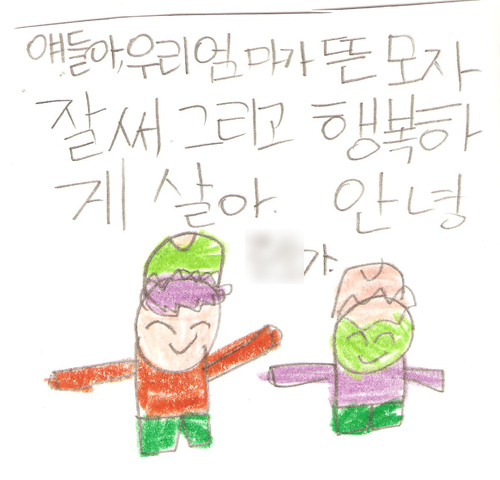 사진/ 모자 후원자님의 자녀 분이 직접 글을 쓰고 그림을 그려주신 사연