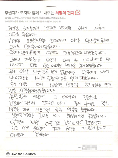 오늘은 시즌 4에 참여하신 모자 후원자님께서 보내 주신 따뜻한 사연입니다.