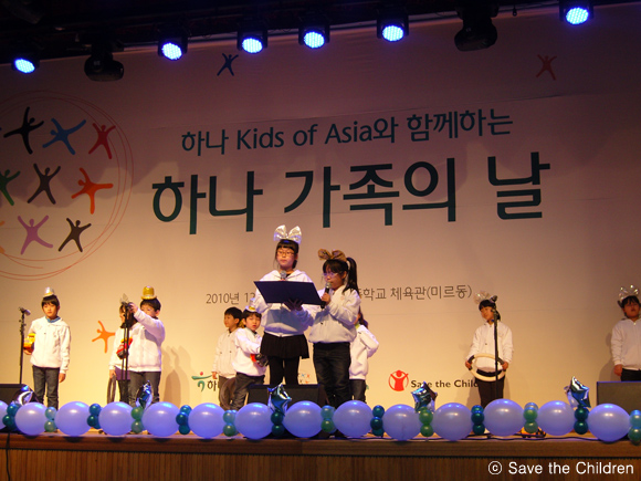 세이브더칠드런은 하나금융그룹과 함께 하나 Kids of Asia와 함께 하는 하나 가족의 날을 주제로 2010년 12월 18일 오후 4시~7시 서울 은평구에 위치한 하나고등학교에서 송년잔치를 진행 하였습니다.