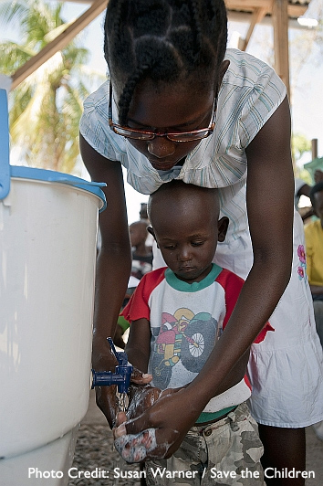세이브더칠드런은 10 곳의 콜레라치료센터(곧 16곳이 될 예정임)에서 구호활동을 하며 ‘지역사회 식수 및 위생 활동 프로그램’을 통해 손씻기 및 기초 위생습관을 알리는 데에 노력하고 있습니다. 이것들은 매우 간단한 방법이며 세이브더칠드런은 위생관련 정보를 반복적으로 강조하고 있습니다.