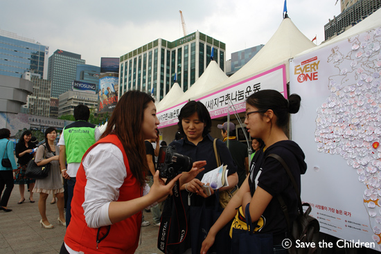 그런가 하면 옹호팀은 온/오프라인을 막론하고 캠페인 현장에 가장 먼저 달려갔던 팀입니다. 아동권리증진을 위한 캠페인 및 행사를 기획하고 실행하는 일을 맡았는데요. 1기는 지구촌 5세 미만 영유아 사망의 심각성을 사람들에게 알리고 아이들이 예방 가능한 질병으로 사망하는 일을 없애기 위해 실행되고 있는 세이브더칠드런의 글로벌 캠페인인 ‘에브리원(Every One)’ 캠페인 진행을 돕고 온라인서명배너를 제작/설치하여 15인의 파워맘블로거와 함께 서명활동을 진행하였습니다.