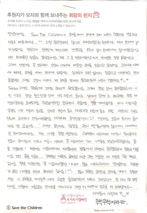 오늘은 시즌 4 참여하신 모자 후원자님께서 보내 주신 따뜻한 사연입니다.