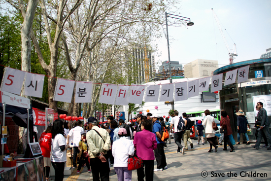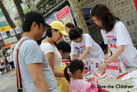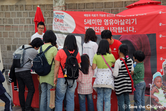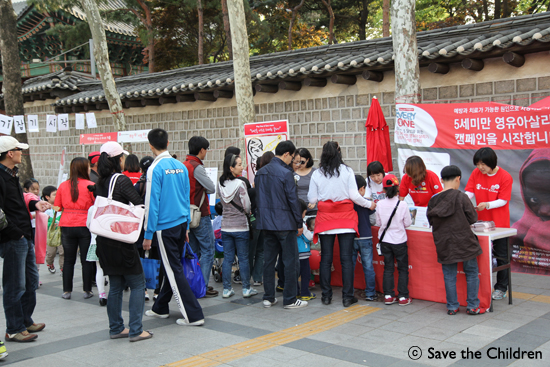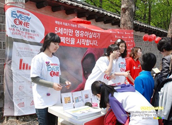 사진/ 5세미만 영유아를 살리기 위하여 서명참여를 하고 있는 시민들