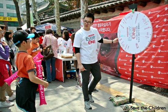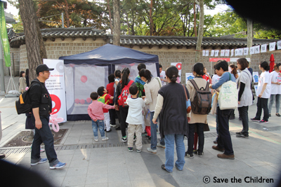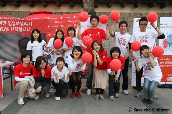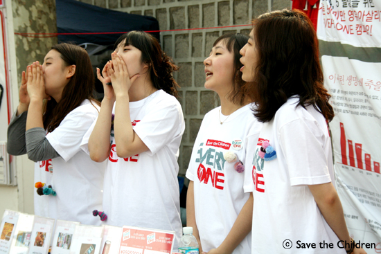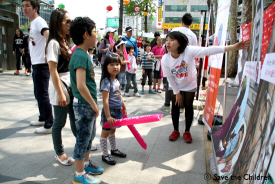 황금연휴를 즐기러 나온 가족 분들과 아이들에게 저희 캠페인을 널리 알리기 위해서 나왔어요. 사람들이 많이 공감해주시고 참여해주시는 것을 보니 너무 기쁘고 보람됩니다. 저희가 진행하는 캠페인 이름은 'EVERY ONE 캠페인 (지구촌 5세 미만 영유아살리기 캠페인)' 입니다. 지구촌에 아직도 4초에 한 명씩 설사나 폐렴 말라리아처럼 손쉽게 치료나 예방이 가능한 질병으로 5살 생일을 맞지 못한 채 죽어가는 아이들을 살리기 위한 캠페인입니다. '우리' 아이들에게 5살 생일을 지켜주자고 외치고 있어요!