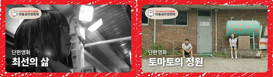 ▲ 2021 아동권리영화제 대상을 수상한 김서진, 반예림, 조아혜 감독의 <최선의 삶>, 최우수상을 수상한 박형남 감독의 <토마토의 정원>
