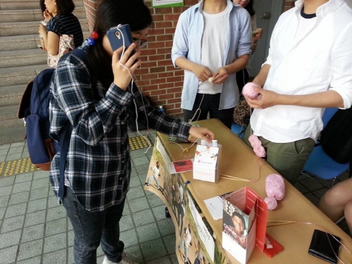 모자를 뜨며 모금활동 하는 엄마 품 돌려주기