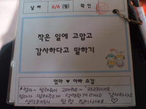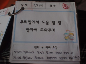 각 가정에서 친구들이 진행한 나눔 미션지. 부모님의 소감이 재미있네요^^